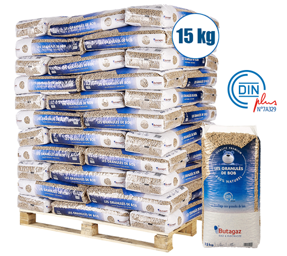 Nos granulés sont 100% résineux, certifiés DIN-Plus (DIN+) et conditionnés en sacs de 15 kg. La performance de votre poêle exige un combustible de grande qualité.